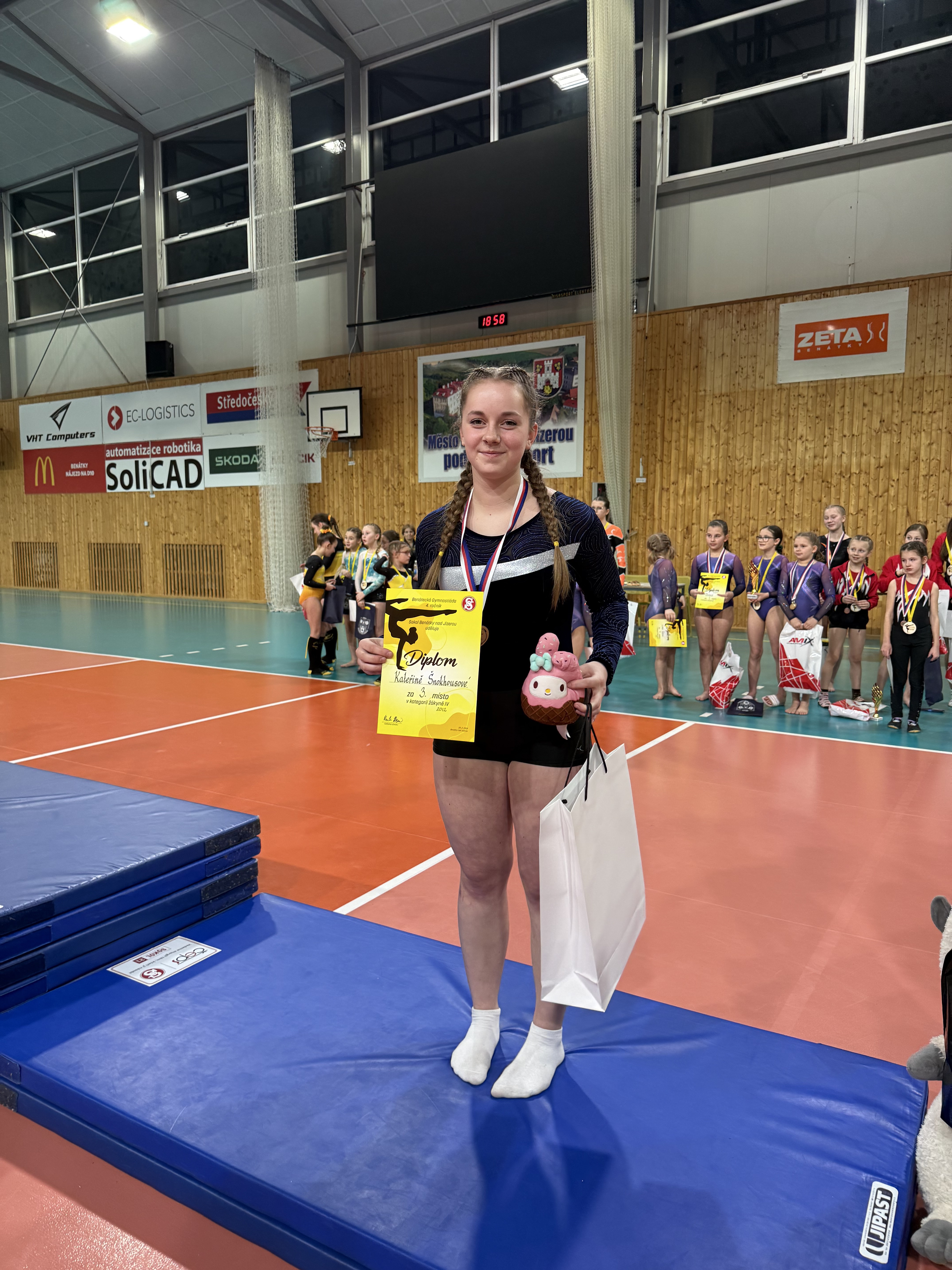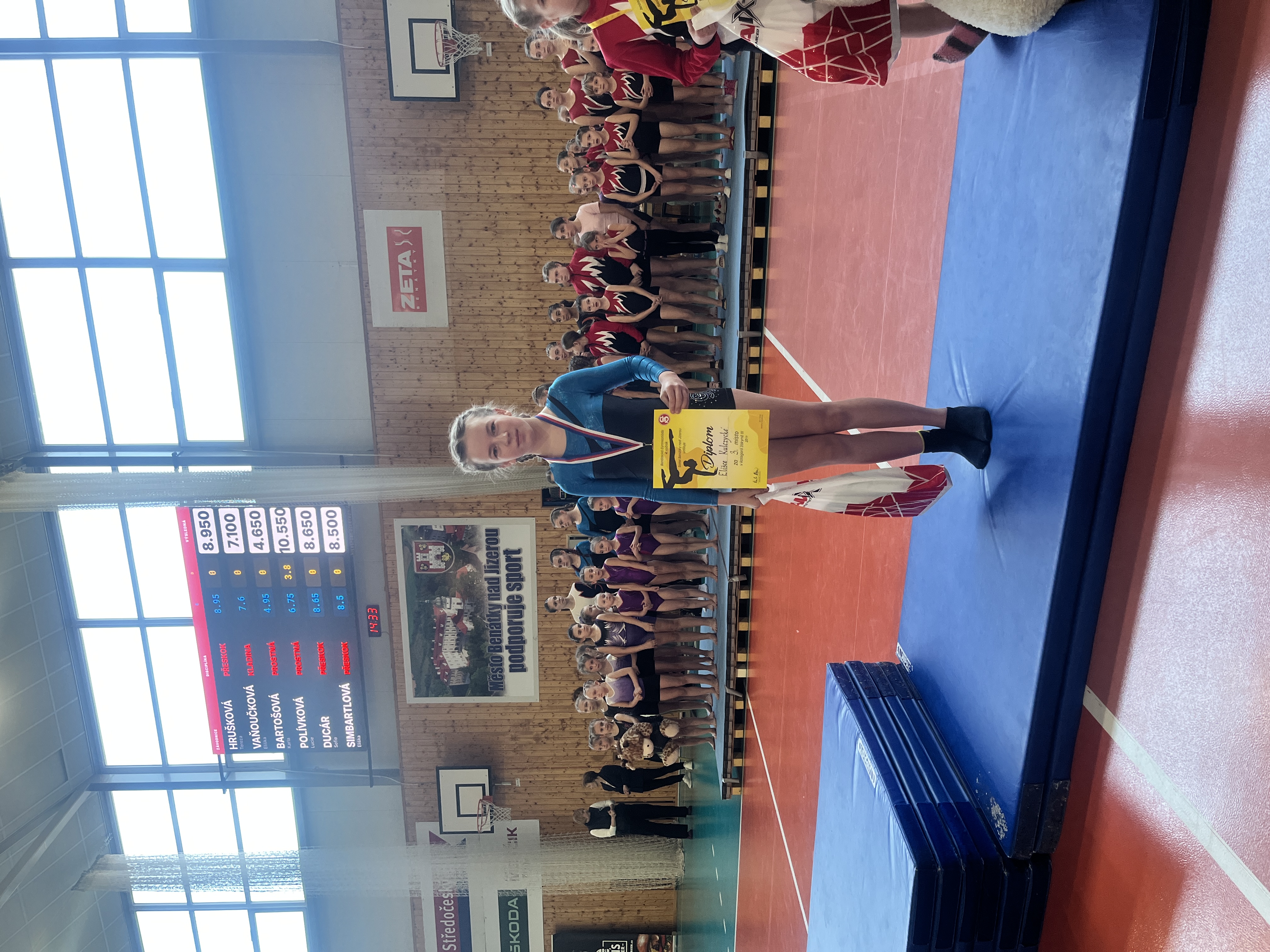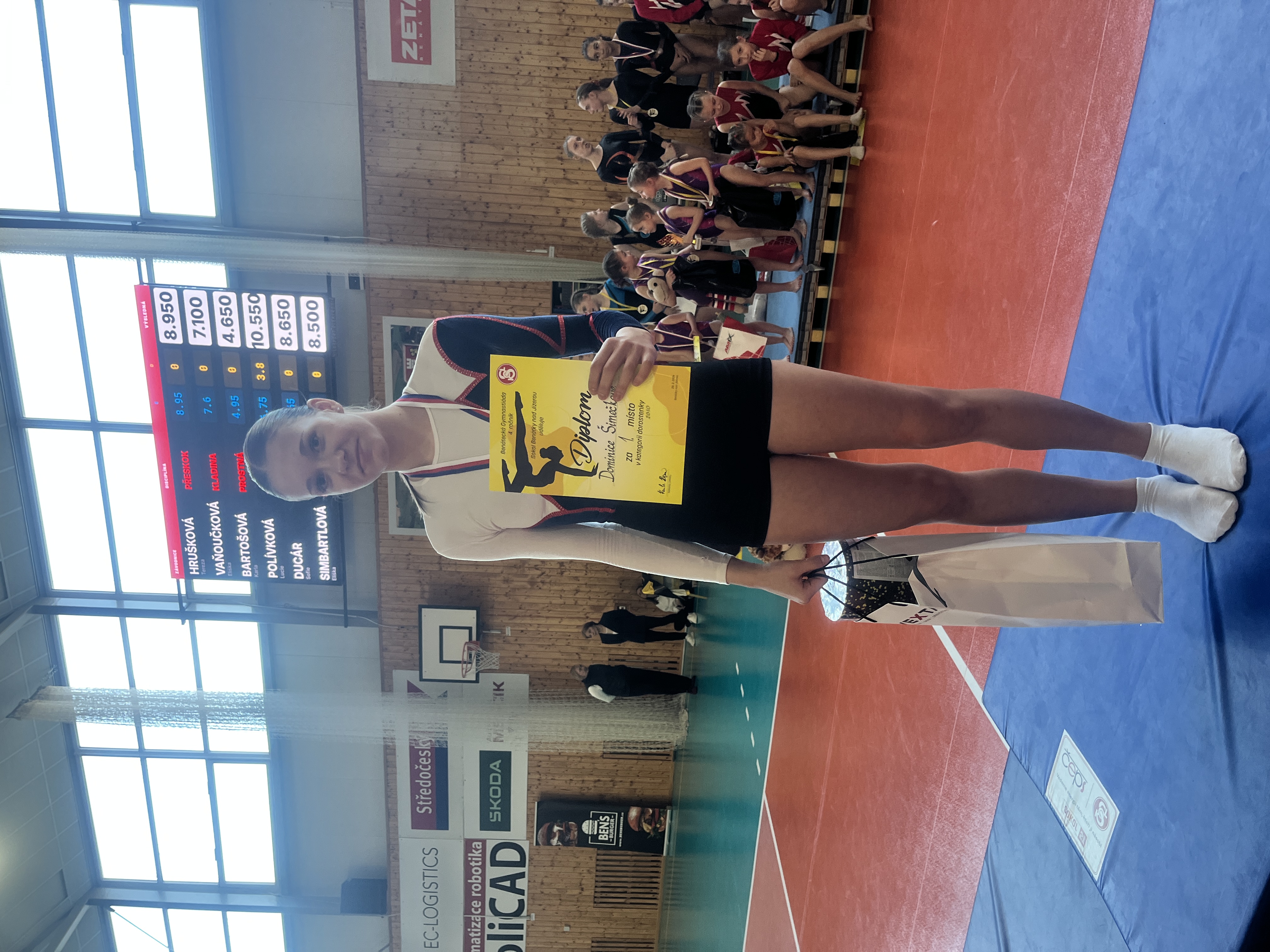 Největší radost nám přinesla kategorie dorostenek, kde Dominika Šimečková (ročník 2010) předvedla skvělé výkony na všech nářadích a zaslouženě si odvezla zlatou medaili za 1. místo.